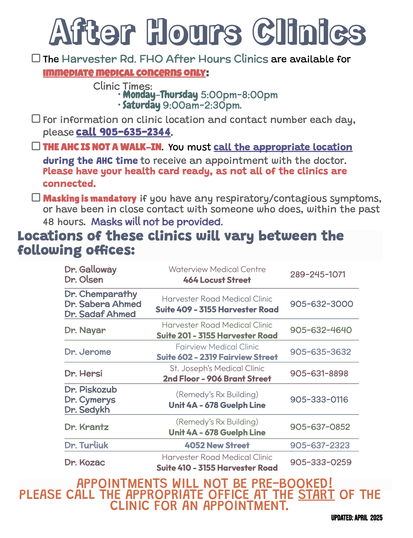 Why is it important to use only the After Hour Clinics associated with the Harvester Rd FHO?